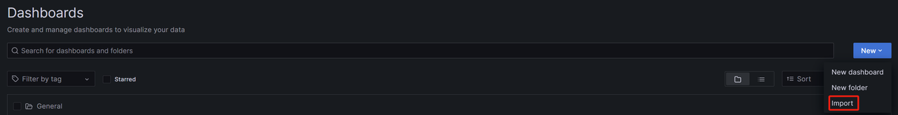 进入Grafana,选择Dashboards:
