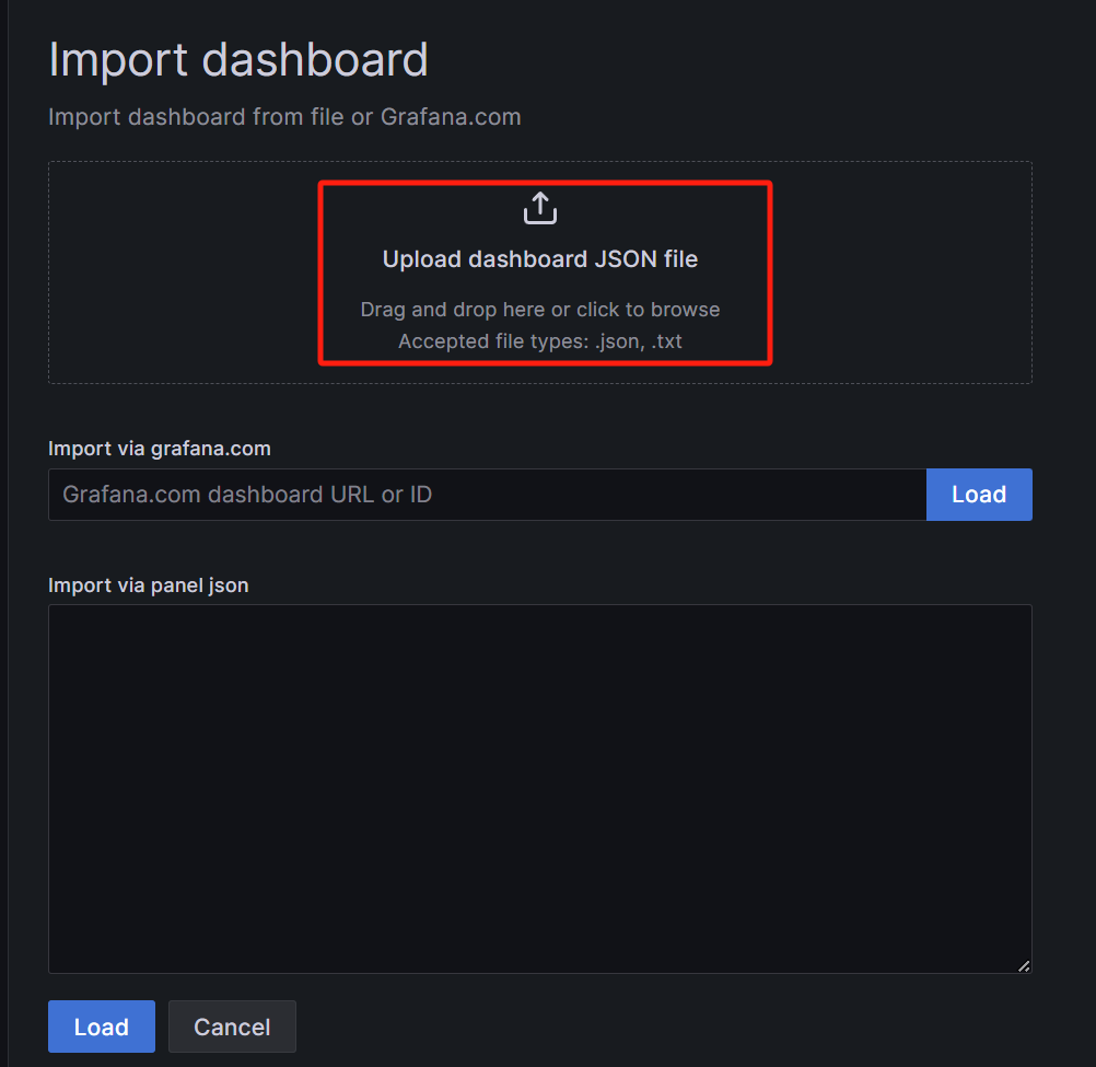 使用upload json file的方式导入Dashboard