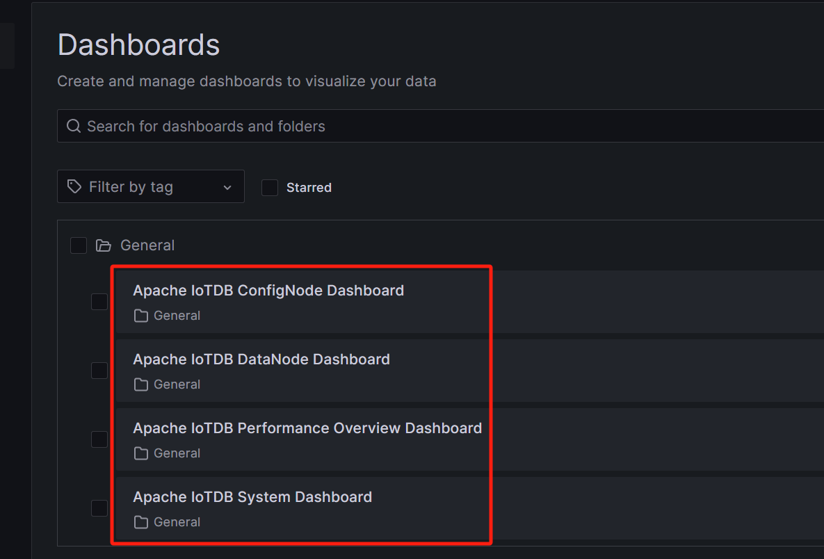 至此,IoTDB监控面板就全部导入完成了,现在可以随时查看监控信息了。