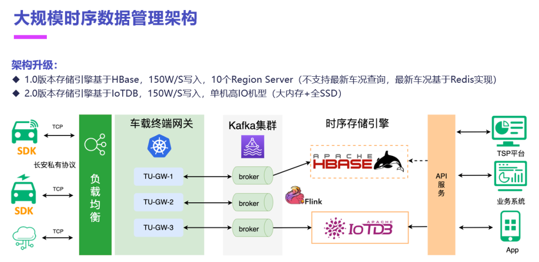 自 2020 年,长安汽车与 IoTDB 已稳定合作 2 年,并已构建了稳定高效的智能网联车辆远程监控系统。因智能网联汽车业务已处于爆发初期,可预见车联网场景的采集车辆数及车辆的采集密度在未来会大幅扩张,时序数据量也会呈指数级增长,大源数据依然是车联网系统将面对的主要难题。