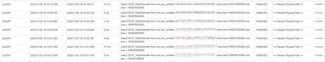 同时,IoTDB 的强大数据查询能力,使基于 IoTDB 的 2.0 版本实现了一套引擎支持单车时间范围查询(实时查询)和单车全时间序列最新点的查询(最新车况查询)场景,并能稳定达成两种查询类型结果的毫秒级返回。