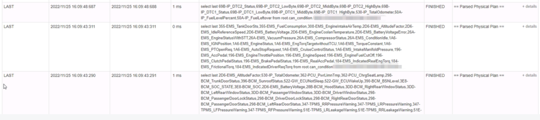 在这样的数据结构支持下,长安汽车使用如下语句运行常用查询场景: