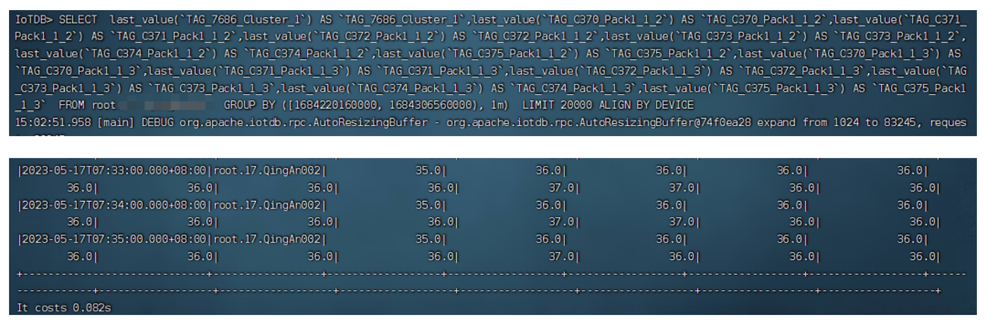 清安储能在 IoTDB 客户端查询各部件不同时间段的最新数据,以此实现数据实时监控,方便运维人员随时掌控各关键部件实时运行状态。